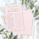 The design features a soft blush pink background on both sides, creating a warm and cohesive look while keeping the layout clean and easy to read. Dark gray fonts in a mix of handwritten script and classic serif maintain a timeless, chic style that’s perfect for any bridal shower theme.