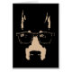 Stark-lit Doberman Pinscher wearing horn-rimmed glasses. Tan graphic on black (and dark coloured shirts). T-shirts, hoodies, cards, gifts.