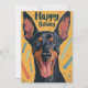 Doberman Birthday greeting. A smiling Doberman wishes Happy Birthday. Perfect for All Doberman lover and Doberman owner.