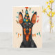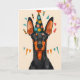 Celebrate birthdays with the striking Doberman Birthday Party Greeting Card! This design features a sleek Doberman Pinscher wearing a colourful polka-dot party hat, surrounded by festive decorations on a soft beige background. Perfect for dog lovers and anyone who appreciates bold and elegant birthday greetings. This card can easily be transferred to other sizes and formats, allowing you to customise it to perfectly suit your needs.