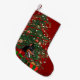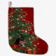 Black and tan Doberman sits by the Christmas tree in among all the presents and guards, or drools over them dog lovers Christmas stocking