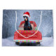 A Christmas truck going through snow delivering Christmas gifts and doberman dog. A perfect Christmas gift idea for someone who love this dog breed.
