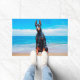 A cute Doberman dog sitting with colourful background, a perfect gift idea for someone who love this dog breed.