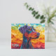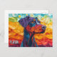 This is an abstract colourful dog portrait of a Doberman breed dog in paper quilling art style. It is a lovely postcard for dog lovers and Doberman owners.
