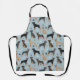 Cute Doberman Pinscher dogs with cropped and uncropped ears sit and stand scattered dog bones and paw prints background.