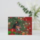 Black and tan Doberman Pinscher sits by the Christmas tree and among the presents just waiting for all the action dog lovers custom Christmas holiday postcard