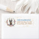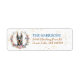 The left side of these return address labels feature an image of a spring flower wreath in colours of soft pink, blue, gold, green and cream. At the centre is a beautiful watercolor portrait of a Doberman Pinscher dog. Tiny gold confetti gives a subtle sparkle to the background. Your custom text is in blue and brown gold at the right.