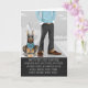 Such a regal and stylish canine companion on this Father's Day card for the pet dad who loves his Doberman Pinscher. An illustration of man and best friend in matching attire.