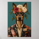 Doberman Pinscher In Suit Poster, Doberman Pinscher Portrait, Doberman Pinscher Oil Painting, Animal Head Human Body Poster, Dog Poster