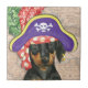 Arrf, ye matey! Fly the Jolly Roger and take to the high seas with this cute Doberman Pinscher pup wearing a pirate hat, bandanna and earring on an old map background. Great design to appeal to all Pirate and Dobe lovers on land and sea alike.