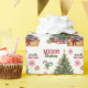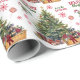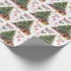 The repeated pattern on this Christmas wrapping paper includes an image of a little Doberman Pinscher puppy sitting in a wicker basket filled with flowers. The basket is decorated with a red bow, and sits beside a Holiday tree. Stylised red and green text says MERRY CHRISTMAS", and your own signature is in two fields for you to customise. Other images included in the pattern include red decorative snowflakes, candy canes, and a peppermint lolly pop.