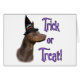 Will it be Tricks or Treats this Halloween? Our holiday design has your favourite dog breed, the Doberman Pinscher, wearing a witch's hat. Add a little 'Hocus Pocus' to All Hallows' Eve this year!