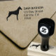 Doberman Pinscher silhouette return address stamp. A fun Dobe lover’s rubber stamp for quickly stamping your return address to personal and business mailings. Visit Jenn’s Doodle World for more dog breed stamps and Doberman themed products.