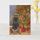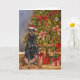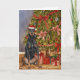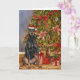 This Christmas card features a watercolor portrait of a Doberman Pinscher dog wearing a santa hat sitting under a Christmas tree.
