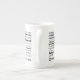 This mug is imprinted with a Bach Solos Suite for Cello. It was purchased as a thank you gift for a professional cellist friend who often performs this work. The cup is made of a high-grade ceramic and is fairly light. The walls are not too thick and it is a small to medium size. It's well finished, has a high-gloss glaze, and looks very elegant. The Bach Solo Suite score on the example I received was clear and had high contrast. Even though the staffs were small, the music was easy to read. The cellist who received this cup immediately knew what the music was as soon as she set eyes on it.