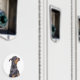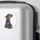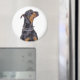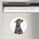 Round Magnet you choose the size. Rescue Doberman giving a sneaky glace over at the photographer asking for a treat for sitting pretty. Original Copyrighted Photo by Deb Simon Photography.