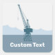 Silhouette of dockyard cargo crane. Vector icon with customisable colour. Custom text.