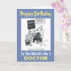 Doctor is receiving training at a Medical School and is learning to write a prescription. Birthday card for a doctor or GP.