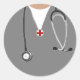 Creative medical-themed envelope seals, party favour labels and doctor gift stickers for medical school graduation announcements, doctor grad party invites and thank-you notes featuring grey hospital scrubs.