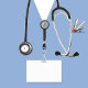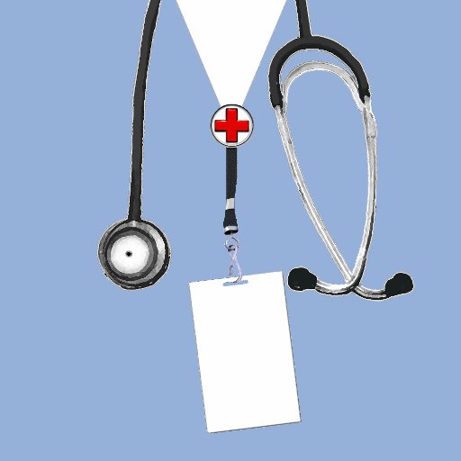 Medical school graduation gift wrap and doctor party decoration featuring blue hospital scrubs, stethoscope and funny Swiss Army knife. Edit text to add physician's name.