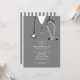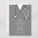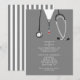 Creative medical school graduation party invites featuring hospital scrubs and stethoscope art. Edit text to create unique doctor grad party invitation or medical school graduate announcement.
