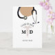 Send a new physician graduate this Doctor Graduation Scrub Coat Congratulations Card. It is designed with a customisable white background and resembles a medical scrub top with a stethoscope around the neck. A caduceus symbol and the abbreviation "MD" are on the front centre with "class of" custom year and personalised with name. The inside of card has a simple customisable greeting and your signature name.
