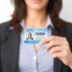 Modern Doctor/ Medical Employee ID Badge Feature medical blue background, single photo, logo , name and location.