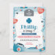 Cute blue medical invitation for children's party. This fun invite will be perfect to invite all little future doctors to this fun prescription party.
