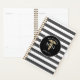 Stay organised with your busy schedule using this Doctor Medical Caduceus Professional Personalised Planner. It is modern elegant designed with a faux gold caduceus symbol and dark grey and white stripes background. Customised with name in all capital letters and signature name is in white trendy handwritten script lettering across the lower front. The text "MD" is on the centre with the caduceus symbol.