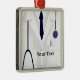 An original graphic design of a lab coat uniform shirt by designer/artist Charmaine Paulson on a Christmas Ornament. The ornament has a text template for your personalisation.