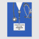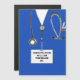 Creative medical school graduation card template for doctor graduate featuring hospital scrubs and funny Swiss Army knife. To personalise edit text to add physician's name.