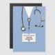 Creative medical school graduation card template for doctor grad, featuring hospital scrubs and funny Swiss Army knife. To personalise, edit text to add physician's name.