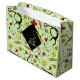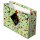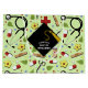 Creative doctor graduation gift bag featuring medical supplies, flowers and classic black and gold graduation cap. Edit text to add name of medical school grad.