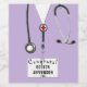 Unique medical School Graduation gift or creative grad party bottle labels featuring lavender hospital scrubs. To personalise edit text to add doctor, nurse or physician assistant's name and the year.