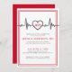 This heartbeat-themed graduation invitation features a bold mix of black and red, with a striking red double line frame and a red background, adding a modern yet timeless touch. The classic serif fonts and clean, modern typography perfectly complement the EKG heart line, making it an ideal way to celebrate a medical or nursing school graduate. While the current design features black and red, all colours—including the heartbeat line and background—can be customised to match school colours or the graduate’s favourite shades.