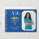 Celebrate the new graduate from doctor of nursing practice school with this gold DNP caduceus graduation announcement in blue! Elegant with a vintage photo border and gold confetti accents! Perfect for anyone graduating as a DNP with their degree as a nurse practitioner!