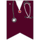 Creative doctor party decoration for medical school grad or physician birthday celebration featuring maroon hospital scrubs and stripes.