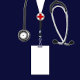 Unique doctor party decoration featuring navy blue hospital scrubs and stripes.