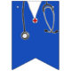 Creative doctor party decoration for medical school grad or physician birthday celebration featuring royal blue hospital scrubs and stripes.