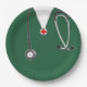 Unique medical school graduation or doctor birthday party plates featuring creative green hospital scrubs.