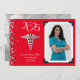 Celebrate the new doctor of medicine graduate from medical school with this silver and Red medical caduceus graduation announcement! Elegant with a vintage photo border and silver confetti accents! Perfect for anyone graduating as an md or do with doctorate!