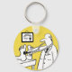 Gift for a doctor. Fun Keyring. In this fun cartoon illustration, a Doctor is checking a patient's feet with his stethoscope.