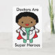 Say thanks to the doctor in your life with this cool customisable card! An African American doctor complete with scrubs, stethoscope and doctors' coat done in a kawaii style. He also wears a super hero cape because doctors save lives and that makes them super heroes! The black text reads, "Doctors Are Super Heroes" and the inside text says, "Thanks for everything you do!", but both can be changed and personalised to fit your needs! Great for National Doctors' Day!