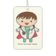 A doctor complete with scrubs, stethoscope and doctors' coat done in a kawaii style. He also wears a super hero cape because doctors save lives and that makes them super heroes! The black text reads, "Doctors Are Super Heroes" on a customisable air freshener.