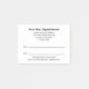 The appointment reminder notes say "Your Next Appointment" at the top. Lines of black display text are available for the name of the medical practice, street address, and phone number. There are also lines for the date and time of the appointment. The bottom has display text you can edit to show a custom message. All text can be edited or deleted.
