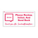 This eye-catching rubber stamp design features the message "Please Review, Initial, And Send Back", plus a line that a signature or initials could be written above. It also features a personalised educator or teacher name. It could perhaps be used by a teacher, educator or tutor to request that a student’s parent(s) or guardian(s) check over the student’s work on a quiz, a paper, an essay, or some other school assignment.