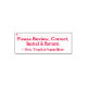 This basic rubber stamp design features the message "Please Review, Correct, Initial & Return", along with a line that a signature or initials could be written above. It also features a customised name. It might be be used by a tutor, educator or teacher to ask a student’s parent(s) or guardian(s) to review and acknowledge the grade that a student got on a test, a project, a quiz, a paper, or some other school assignment.