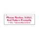 This basic rubber stamp design features the message "Please Review, Initial, And Return Promptly", along with a line that a signature or initials could be written above. It also features a customised tutor or teacher name. It might be be used by an educator, teacher or tutor to ask a student’s parent(s) or guardian(s) to review and acknowledge the mark that a student got on an exam, a project, a test, a quiz, or some other school assignment.