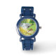 A watch with a beautiful forest scene including doe and fawn drinking from a stream near a waterfall. Original artwork by W.B.