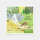 Napkins with a beautiful forest scene including doe and fawn drinking from a stream near a waterfall. Original artwork by W.B.